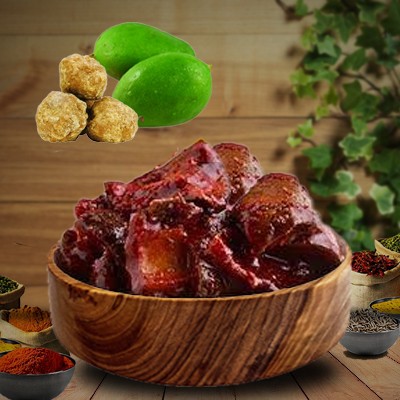 Its main composition that adds a special taste to this veg mango pickle is “Jaggery”.